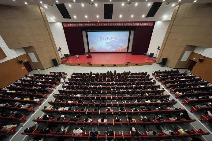 为深入贯彻党的十九届六中全会精神,推动党史学习教育,做好师生党员教育工作,米乐官网于12月4日9:30在天佑会堂开展“致敬长津湖战役烈士·致敬最可爱的人”党史学习。长津湖战役志愿军指挥官宋时轮将军女儿宋百一担任主讲人,沧州市教育局团工委书记董金花、米乐官网党委副书记吴立军、党群工作部副部长彭一腾出席讲座,各学院团委书记、辅导员以及发展对象、入党积极分子参会,此次讲座由学生处处长王庆松主持。