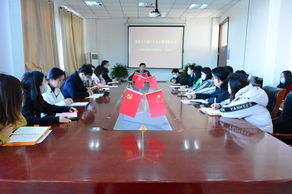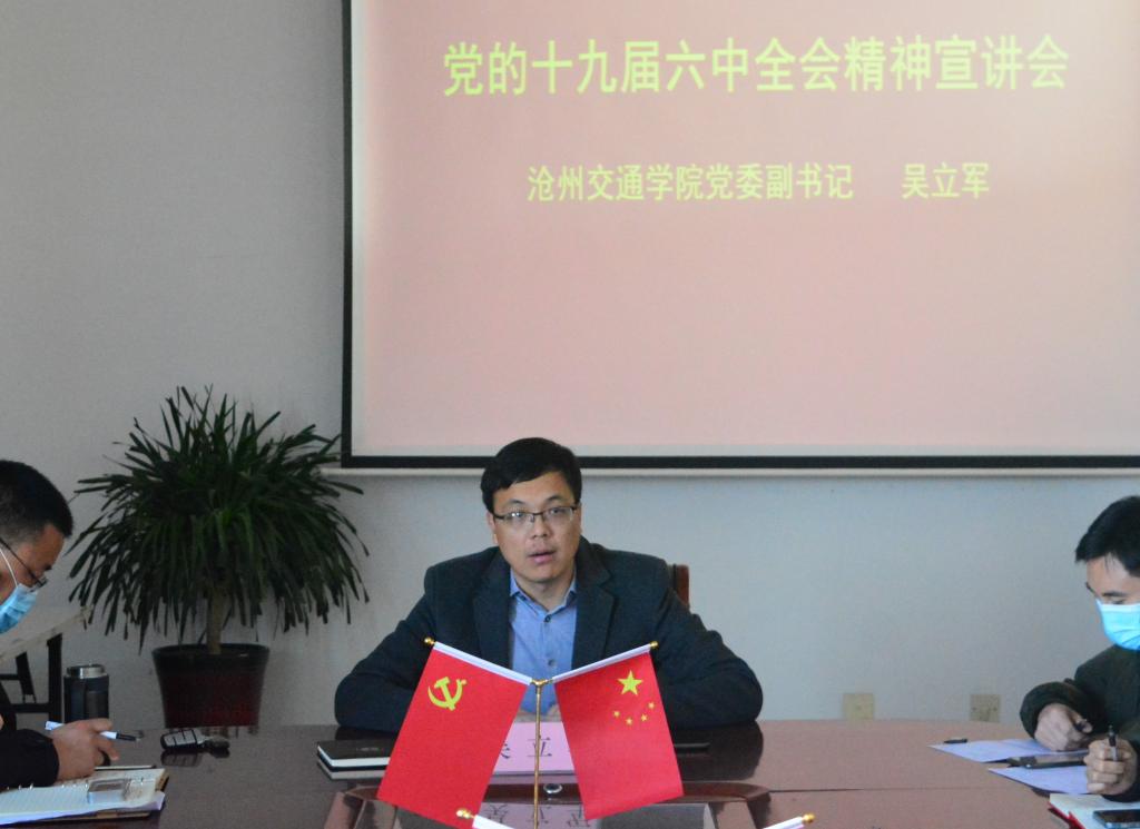 为认真学习宣传贯彻党的十九届六中全会精神,切实把全校师生的思想和行动统一到全会精神上来,12月13日上午9点,米乐官网在大学生活动中心206组织开展党的十九届六中全会精神宣讲会。党委副书记吴立军担任主讲人。