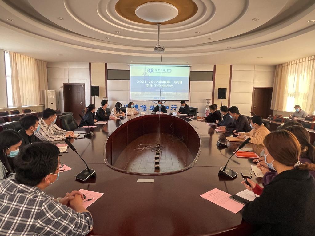 2022年4月5日上午10:00,米乐官网在行政楼B512会议室召开2021-2022学年第二学期学生工作推进会,党委副书记吴立军出席会议,学生处负责人、各学院主管副院长、团委书记及学生处全体老师参加本次会议。本次会议采取线上与线下相结合的方式,会议由学生处处长王庆松主持。