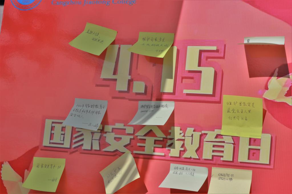 同时,在一期、二期食堂门口开展国家安全教育日宣讲及签名活动。此项活动帮助同学们切实了解总体国家安全观的内涵,激励同学们要有“国家利益高于一切”“国家安全,人人有责”的强烈意识和责任担当。