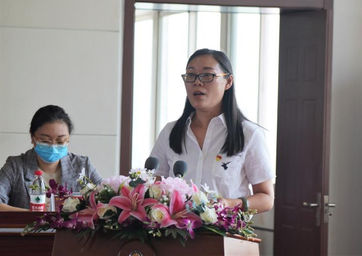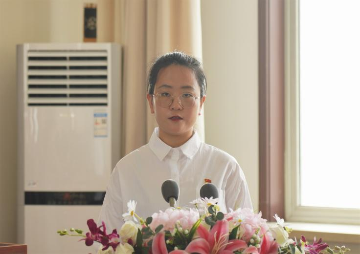 招生就业处门媛作为优秀共产党员代表发言,在生活中牢记党员身份,在工作岗位上履职尽责,在服务学子中成就自我,在组织需要时冲锋在前,在疫情防控中勇担重责,在荣誉面前不骄不躁,在追求进步的道路上坚守初心。她表示,今后将继续带头立足岗位,脚踏实地、创优争先,真正成为不负学校期望、不负师生期望的先锋模范,成为以个人的莹莹烛火为党旗增辉的优秀党员。