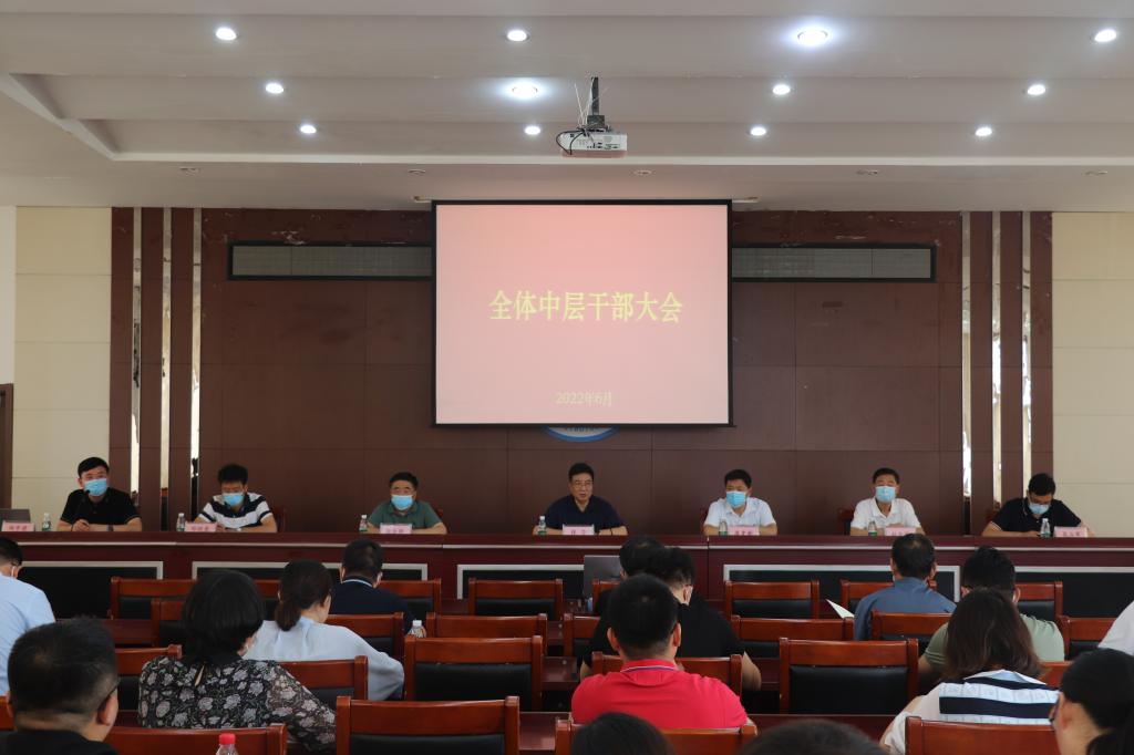 6月22日上午,米乐官网在行政楼A512召开全体中层干部大会,全体校领导与中层干部通过线上线下方式参加会议,会议由学校办公室主任杨中建主持。