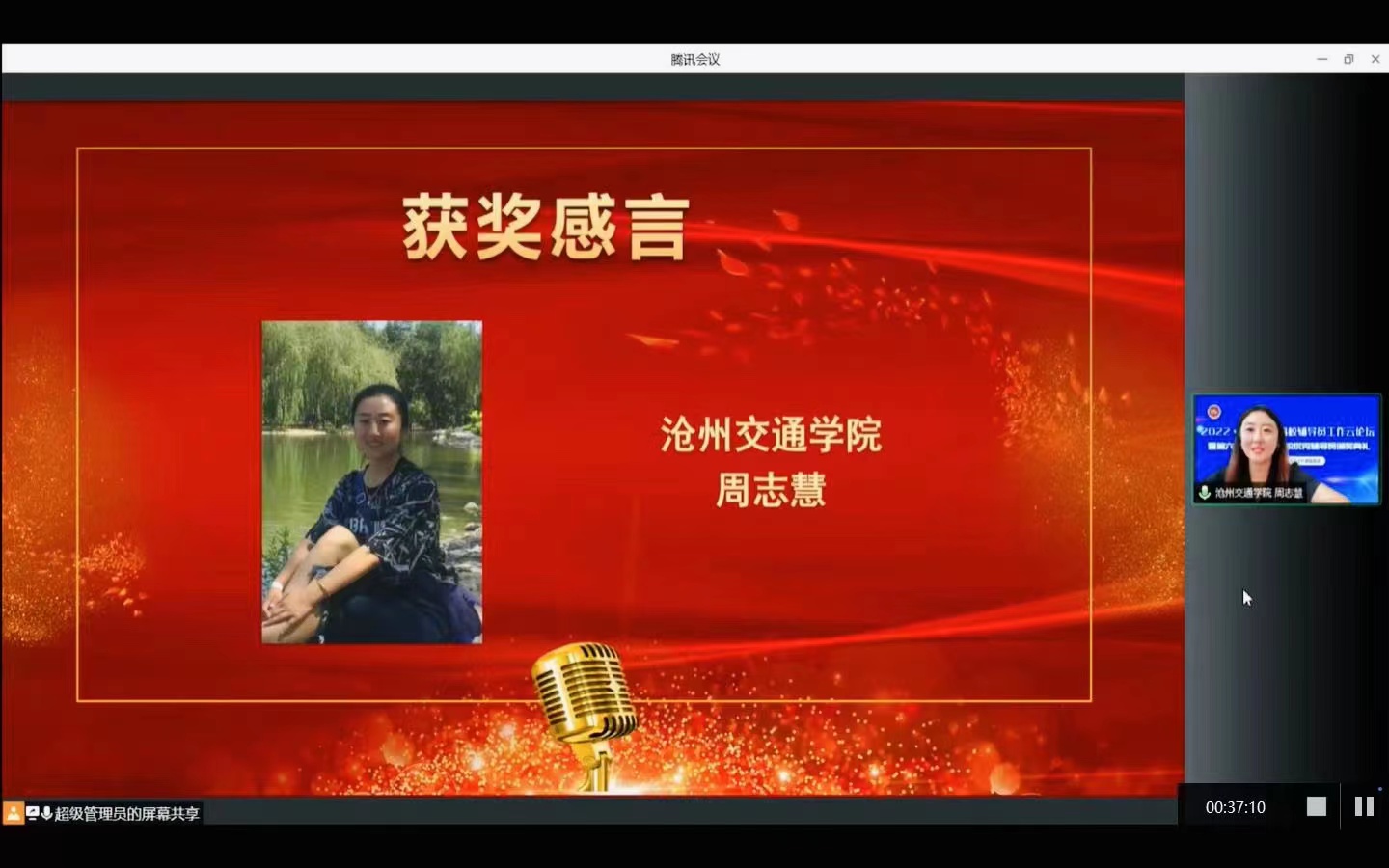 6月25-26日,2022全国民办高校辅导员工作云论坛暨第六届全国民办高校优秀辅导员颁奖典礼在线上隆重举行。米乐官网外国语学院团委书记、辅导员周志慧凭借良好的政治素养、扎实的理论功底和出色的业务能力,荣获“2021年全国民办高校优秀辅导员”荣誉称号,并在颁奖典礼上作为获奖代表发言。