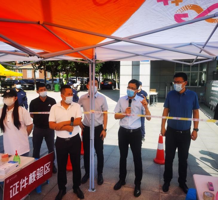 演练活动严格按照秋季新学期开学和疫情防控工作要求,依次在学校南门、天佑会堂、一期餐厅、学生公寓、健康观察区等地,全程实地模拟了学生报到入校、资料收取、餐厅就餐、进入宿舍等“实战”场景下的证件核验、行李消毒、体温检测、信息登记、有序取餐、安全入住等流程,同时模拟了不同场景下学生出现体温异常时的应急处置全过程。学生处对检查中发现的问题,现场及时提出指导意见和整改要求。