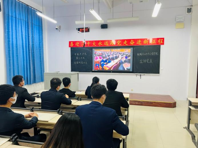 为深入学习领会党的二十大精神,提高青年思想水平与政治觉悟。2022年10月16日上午10时,中共米乐mile官方网站机械与动力工程学院党总支组织了全体师生党员以线上线下相结合的方式观看中国共产党第二十次全国代表大会开幕式。大会开始,奏响国歌,全体师生党员起立共唱国歌。