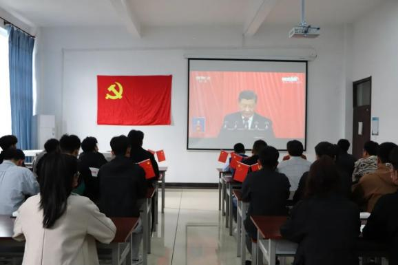 通过观看大会直播,全体师生党员表示,我们要高举中国特色社会主义伟大旗帜,全面贯彻习近平新时代中国特色社会主义思想,弘扬伟大建党精神,自信自强、守正创新,踔厉奋发、勇毅前行,为全面建设社会主义现代化国家、全面推进中华民族伟大复兴而团结奋斗。