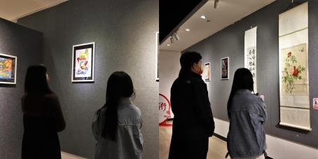 此次书画展共有27幅展览作品,这些作品主题鲜明,内涵丰富,集思想性、艺术性和观赏性于一体,每一幅作品都以艺术的形式呈现出了新时代青年对党的热爱。同学们在一幅幅生动的作品前驻足观看,认真品鉴并与作品合影留念,勉励自己,不忘党的百年奋斗史,将党的二十大精神融入于心、贯彻于行!