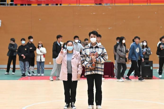 最终,经济管理学院以50:36的成绩获得第十四届新生杯篮球赛冠军。颁奖嘉宾们为获奖学院代表队员进行颁奖。