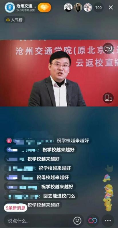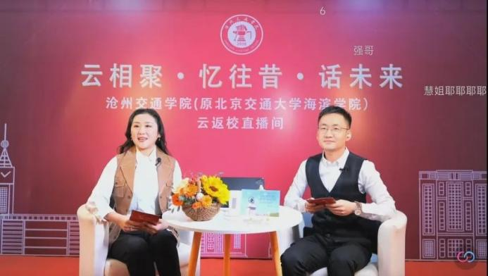 同为校友的马超老师作为场外主持人带领大家云游校园,共同欣赏校园美景,共同聆听校史讲解员线上讲解学校历史与近十年发展取得的成绩,共同品味食堂里舌尖上的美食。并和“交团团沧圆圆”一起代替校友开展云签到活动。