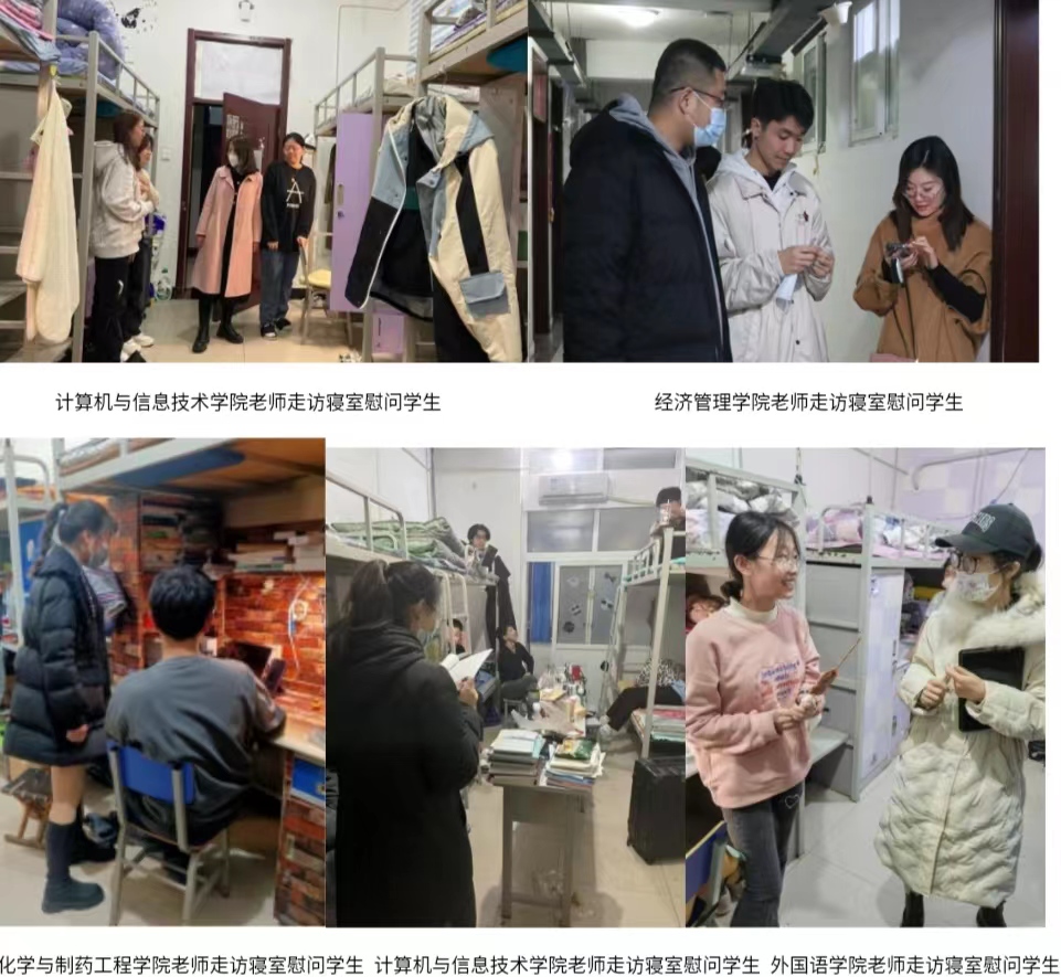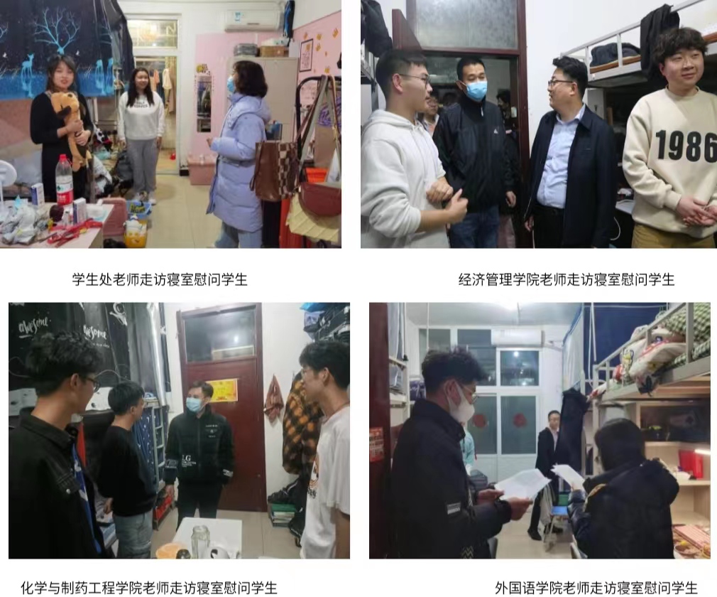 新学期伊始,2月26日18:00,米乐官网校领导党委副书记吴立军,学生处处长王庆松,校团委书记学生处副处长曹蒙春,学生处副处长翟砚辉及学生处老师进行了寝室走访工作,同时各学院团委书记、全体辅导员自行组织开展了寝室走访工作,在第一时间了解学生的返校情况、思想动态、生活状况、学业问题。