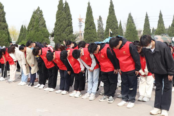 米乐官网师生怀着无比庄重的心情进入烈士陵园。广场正中,镌刻着“人民英雄永垂不朽”的烈士纪念碑巍然耸立。米乐官网师生整齐列队于纪念碑前,学生代表向革命英烈敬献花篮,全体肃立,郑重三鞠躬,以此表达对革命英烈的深切缅怀和崇高敬意。