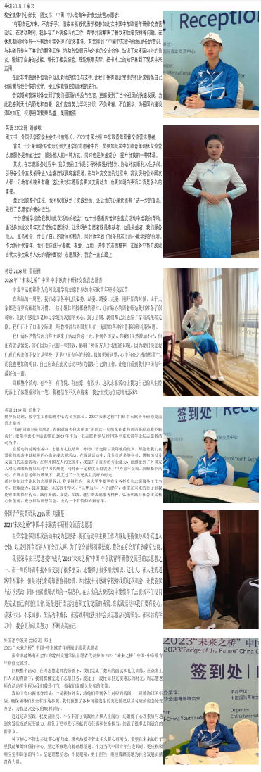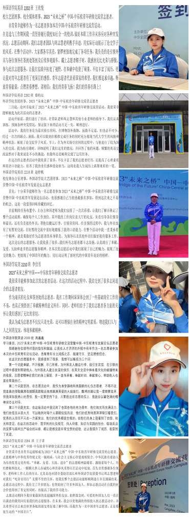 米乐官网外国语学院志愿者纷纷表示很荣幸能够为本次成功举办2023年“未来之桥”中国-中东欧青年研修交流营贡献出自己的一份绵薄之力,参加志愿活动在自我的社会价值得到了肯定的同时,也提高了个人学习能力,对志愿服务有了更深入的体悟的同时也更坚定了为祖国未来发展贡献出自己的青春力量的决心。