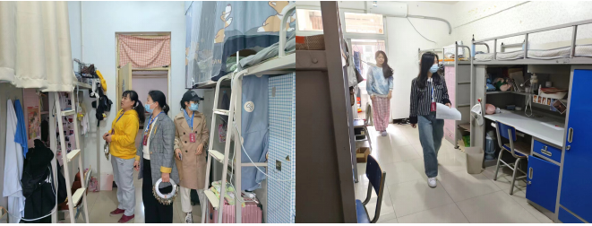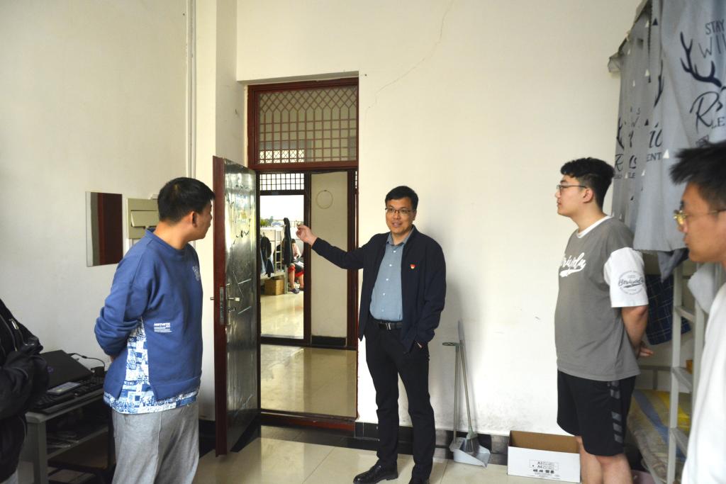 检查开始,吴立军副书记及王庆松处长走访了部分学生宿舍,仔细察看了学生宿舍的安全卫生情况及周边环境,并与学生沟通交流,询问了学生近期的学习生活情况。同时,各组分别进行公寓检查。检查发现,学生宿舍环境总体情况较好,房间干净整洁,少部分宿舍存在卫生欠佳或违纪的现象,对此各组进行了详细记录,并督促学生进行整改。公寓周边存在安全通道不通畅的问题,需要提醒同学们规范摆放电动车和自行车,保持宿舍周边环境安全。