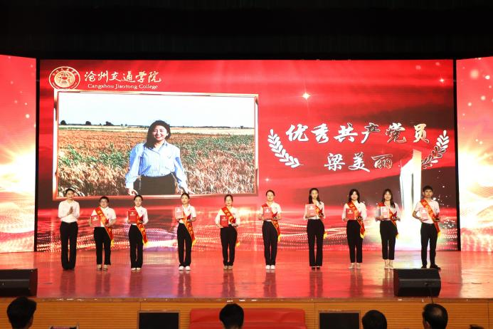 在庄严的国歌声中,大会拉开序幕。大会重温党的光辉历程,讴歌党的丰功伟绩,继承党的优良传统,表彰学校先进党总支、先进党支部、优秀党务工作者、优秀共产党员,沧州市先进集体和优秀个人。