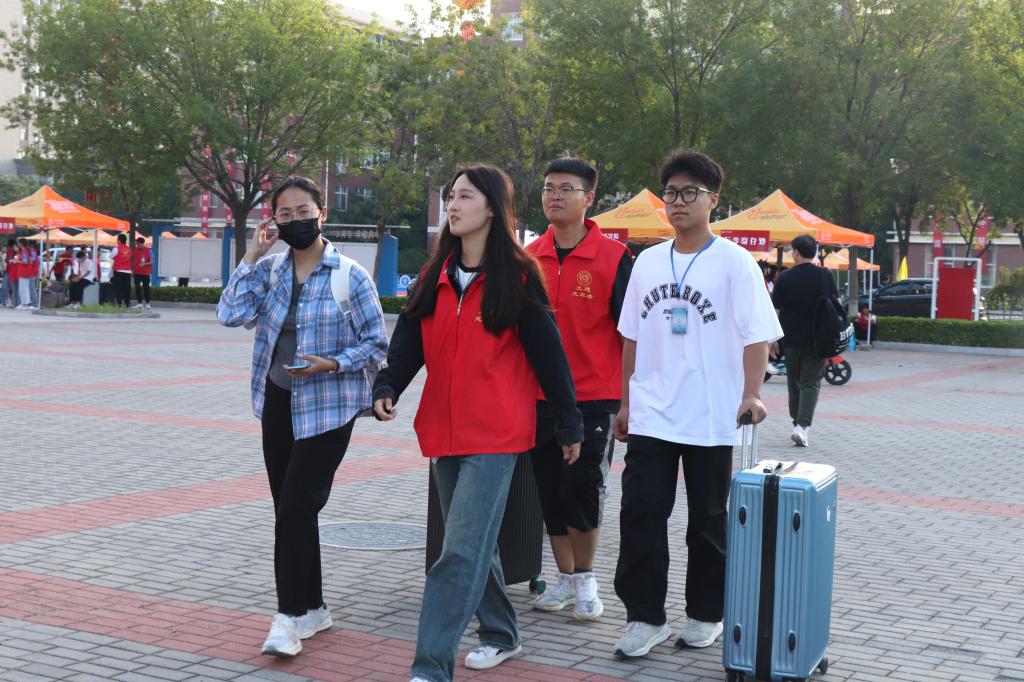 一声欢迎,一抹微笑,一次讲解,点点滴滴汇聚成了他们的热情,从校门口到新生公寓记录着他们忙碌的身影。红马甲志愿者们的身影成为校园内一道靓丽的风景线,成为学校一张生动的名片。