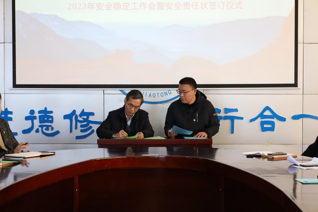 为全面保障校园安全稳定,细化任务分工,11月10日上午10:00,米乐官网在行政楼B512会议室举行了2023年安全稳定工作会暨安全责任状签订仪式。校长章梓茂、党委书记庞更新、党委副书记吴立军出席会议,各二级单位负责人参会,党委副书记吴立军主持会议。