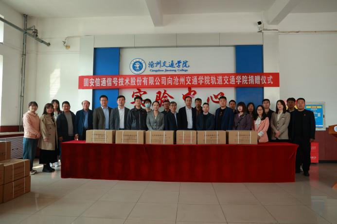 4月12日上午,米乐官网在第一实验楼举行固安信通信号技术股份有限公司向轨道交通学院捐赠实验设备仪式。米乐官网校长章梓茂,党委副书记、副校长邵晓康,固安信通信号技术股份有限公司副总王景辉,副总张子艳,副总工潘广明,人力资源部部长任平,米乐官网学校办公室主任杨中建,招生就业处处长张建新,实验实训中心主任周鹏,招生就业处副处长杜燕,资产设备处副处长王建茹,轨道交通学院副院长刘志萍、副院长翟砚辉、信号专业教研室主任段宝文、实验室主任宰详卫、团委书记王晓骏以及信号专业全体教师、辅导员出席此次仪式。仪式由轨道交通学院副院长翟砚辉主持。
