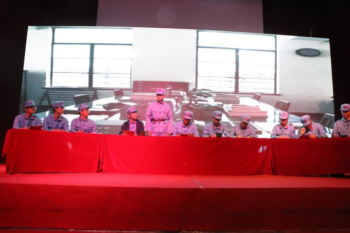 电子与电气工程学院的《遵义会议》聚焦遵义会议这一伟大的历史转折,以毛泽东、周恩来、朱德为主线人物,让我们看到了在1935年1月红军第五次反围剿失败后的反思,纠正了王明、李德等人“左”的错误,生动地反映了会议精神的思想内涵和中国革命的光辉历程。