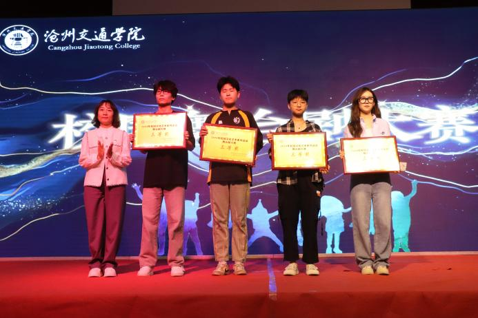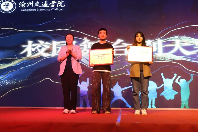 学生处副处长、校团委书记曹蒙春为三等奖选手颁奖