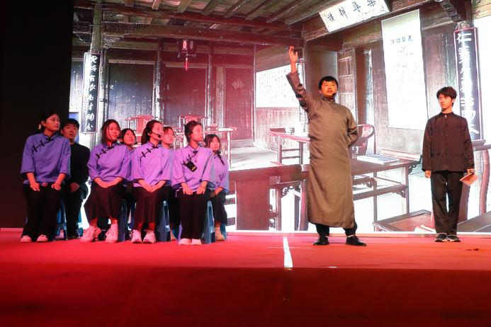 最后是由外国语学院带来的《风声》。故事从汪伪政府多名要员被暗杀开始,我党谍报人员在陷入险境后与敌人斗智斗勇,最终通过顾晓梦的牺牲保证了信息的及时送出,拯救了我党地下工作。无数仁人志士和英雄楷模,他们为了人民的幸福和祖国的繁荣抛头颅洒热血,和平时代的我们也应无所畏惧地战胜困难,用我们的信仰托起祖国兴隆昌隆。