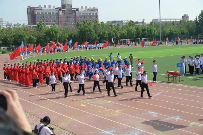 激情燃烧,活力绽放。5月17日上午8时,以“五育融合绽华彩,健康运动向未来”为主题的第十三届田径运动会开幕式于米乐官网操场隆重举办。渤海新区黄骅市人民政府副市长张桂云,米乐官网校长章梓茂,党委书记庞更新,副校长赵金楼,副校长王忆宁,以及各二级单位负责人出席此次开幕式。党委副书记吴立军主持本次开幕式。
