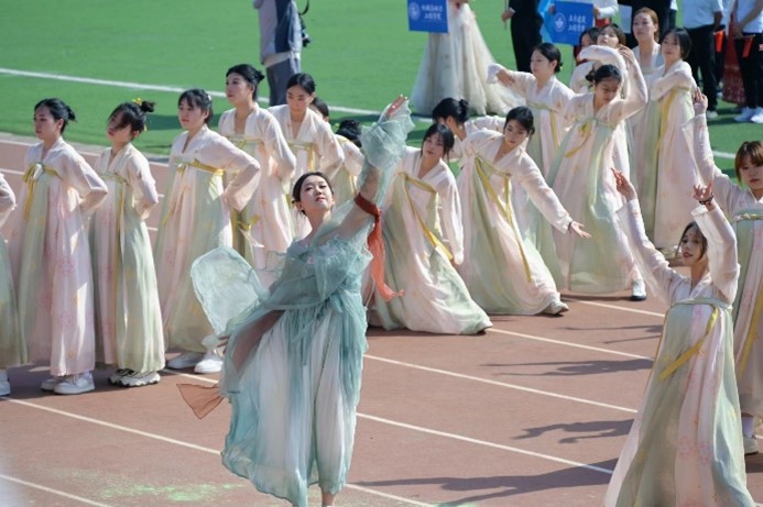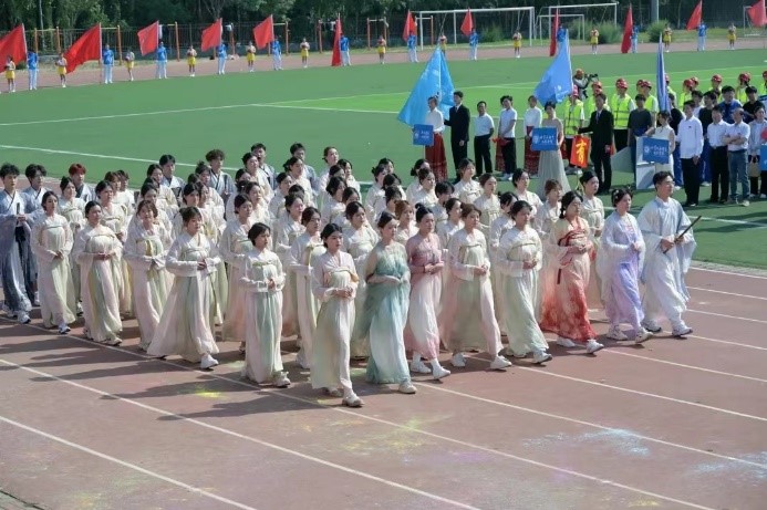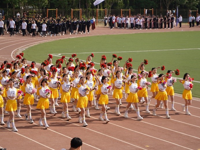 旗之所向,心之所向。在五星红旗、校旗的引领下,刀旗方阵,鲜花方阵,裁判员方阵,教职工方阵,毕业生方阵以及各学院方阵依次入场,他们迈着铿锵的步伐,胸怀赤子之心,展示着无限可能。