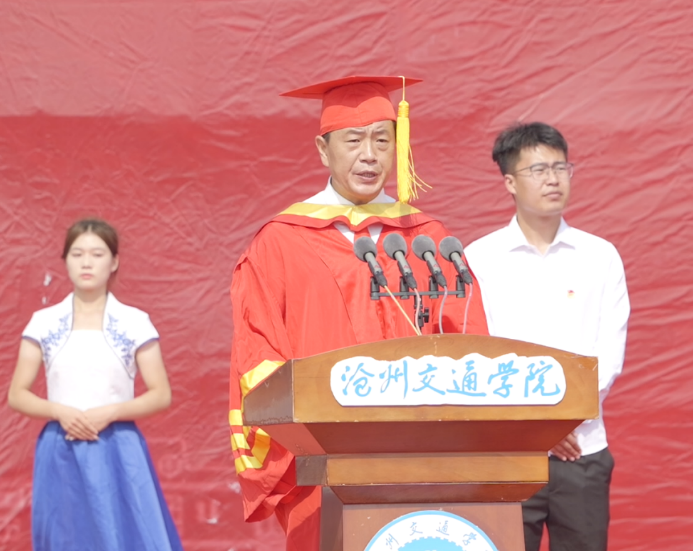 渤海新区黄骅市人民政府副市长张桂云在致辞中,向圆满完成学业的毕业生表示热烈的祝贺,同时也向培养优秀学子的老师们、家长们致以崇高的敬意。她肯定了米乐官网学生在黄骅求学期间为黄骅城市发展所做出的贡献,祝愿同学们在新的征程上,前程似锦,勇往直前。