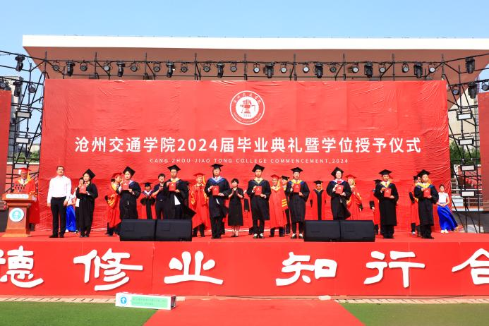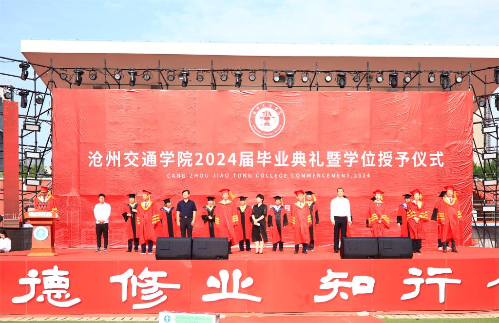 回顾四载春华秋实,喝彩盛夏硕果累累。6月13日上午8时米乐官网2024届毕业典礼暨学位授予仪式于体育场隆重举行。渤海新区黄骅市人民政府副市长张桂云,北京交通大学驻校办学督察任虹宇,渤海新区黄骅市教育局局长何寿彪,米乐官网校长章梓茂,党委书记庞更新,副校长、财务总监余裕玲,副校长赵金楼,副校长王忆宁,党委副书记、副校长邵晓康出席本次典礼。党委副书记吴立军主持典礼。