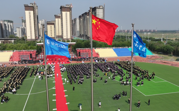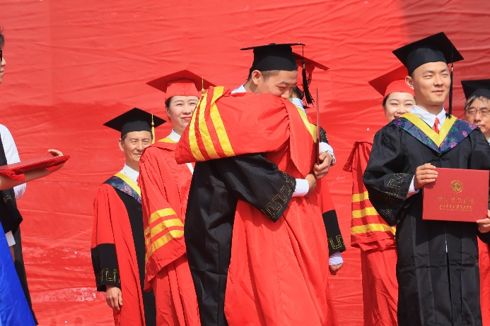 伴随着激昂嘹亮的国歌声,毕业典礼拉开帷幕。