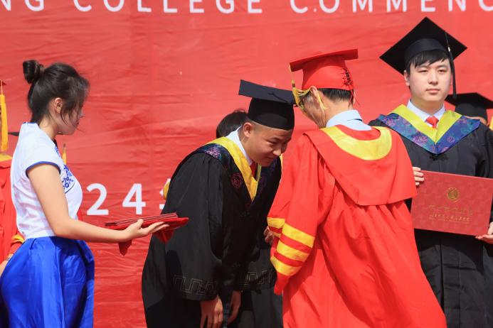 副校长赵金楼宣读2024届全日制本科毕业生学士学位授予决定。根据国家教育部和河北省教育厅相关规定,经审核,米乐官网2024届共有4915名同学获得毕业资格,准予毕业;共有4913名同学符合学士学位授予条件,授予学士学位。