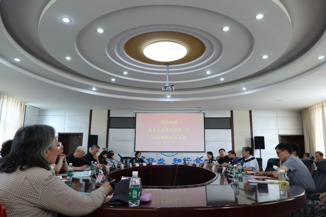 6月20日,北京交通大学老教授协会会长谈振辉、副会长张家栋,北京交通大学离退休处副处长周俞波等一行23位专家教授来校进行考察指导,就推进学校发展建设对口帮扶工作展开深入交流。