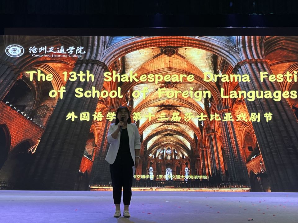 米乐官网教学副院长张丽为戏剧节致闭幕辞,她指出本届戏剧节在英语教研室主任陆朝霞的带领下,莎剧教学团队全体指导教师精心指导,从剧本选取、节目编排,到道具制作、舞台布置,师生反复研磨、共同打造,呈现出了一场精彩的盛宴。学生们共彩排了32组剧目的演出,经过团队的严格选拔,共10个剧目脱颖而出,以精湛的表演、精美的舞台设计和精准的音响灯光配合,实现文化共赏,向世界伟大的剧作家莎士比亚致敬,向世界文学经典致敬。