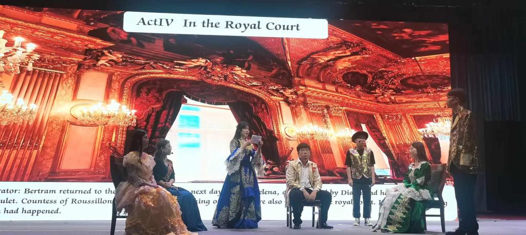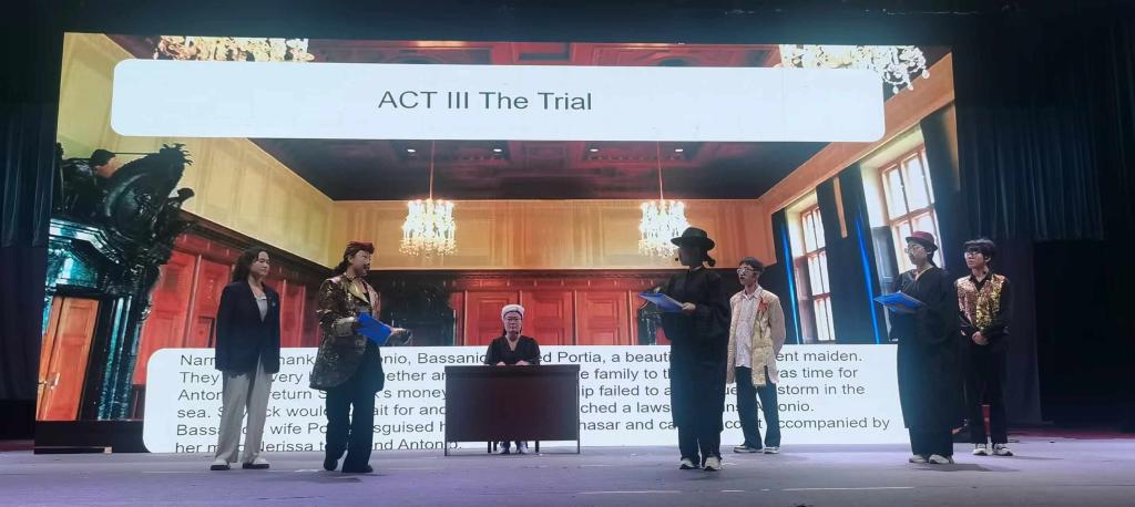 汇演中,2022级英语专业学生们用精湛的演技还原了一幕幕经典的莎士比亚戏剧,《仲夏夜之梦》《李尔王》《麦克白》《奥赛罗》《罗密欧与朱丽叶》《威尼斯商人》《哈姆雷特》《终成眷属》《雅典的泰门》等作品的完美演绎,让观众们连连称赞。演绎中还有精彩的配乐和歌曲表演,更是将现场气氛推向高潮。