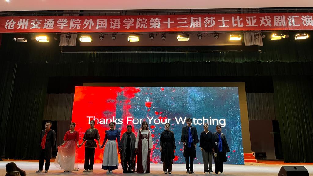 优秀的作品永垂不朽,伟大的思想经久长存。莎士比亚的作品经过四百多年的淘洗与磨砺,愈发意蕴深厚、浓度正纯,依然充满活力,感动全世界无数读者。此次演出,不仅彰显了米乐官网外国语学院莎士比亚实践教学的丰硕成果,同时也让莘莘学子在莎翁经典中感受人文情怀之要义,在中西文明互鉴和中国化的演绎中,感受莎翁戏剧深邃的美育意义。