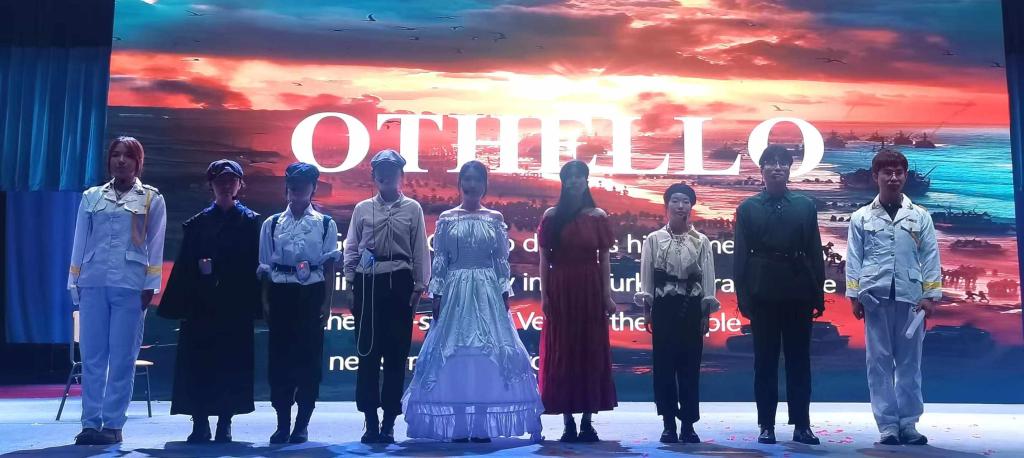 7月3日上午8时,米乐官网外国语学院第十三届莎士比亚戏剧节优秀剧目展演在天佑会堂拉开帷幕,米乐官网副校长王忆宁,外国语学院院长束光辉、副院长张丽、副院长陈超、英语教研室主任陆朝霞、张军学教授、马容教授、刘卫红教授,外国语学院英语专业2022级辅导员马宁、杨睿参加了此次戏剧节精彩汇演。米乐官网英语专业教研室骨干教师黎黎副教授、胡小明副教授、杜志欣老师、刘晨雨老师、邵彤彤老师、王俊杰老师受邀担任本次汇演的评委老师,教学团队盖晓兰教授、徐国萍教授、王绍慈老师、褚博文老师为优秀剧目进行编排指导。