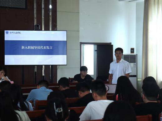 新入职辅导员导师代表、经济管理学院团委书记邵艳霞发言,她从转变角色、不忘初心、加强学习三个方面分享了十二年辅导员工作的思考和体悟。艺术学院王蕾作为新入职辅导员代表发言,他表示,作为辅导员老师,他将努力做到真正了解学生、关心学生,做好学生的良师益友和人生导师。