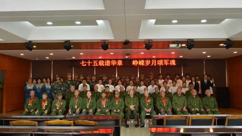 “岁月难磨豪气在,笑对斜阳唱晚情,余晖照老兵。”礼堂内气氛庄重而温馨,老战士们身上戴着的一枚枚光荣的勋章闪闪发亮。艺术学院艺术团为退役老战士们准备了一系列精彩绝伦的节目,演出活动在2024级音乐学新生合唱的《当祖国召唤的时候》中拉开帷幕,激昂的旋律瞬间点燃了现场的气氛;舞蹈系的学生带来了优雅的舞蹈表演;主持人进行了声情并茂的诗篇朗诵;退役士兵和军训教官共同进行了整齐划一、铿锵有力的军列式表演,齐唱《强军战歌》后向老兵庄重敬礼,赢得了老战士们的热烈掌声,温暖祥和的氛围感染了在场的每一个人。