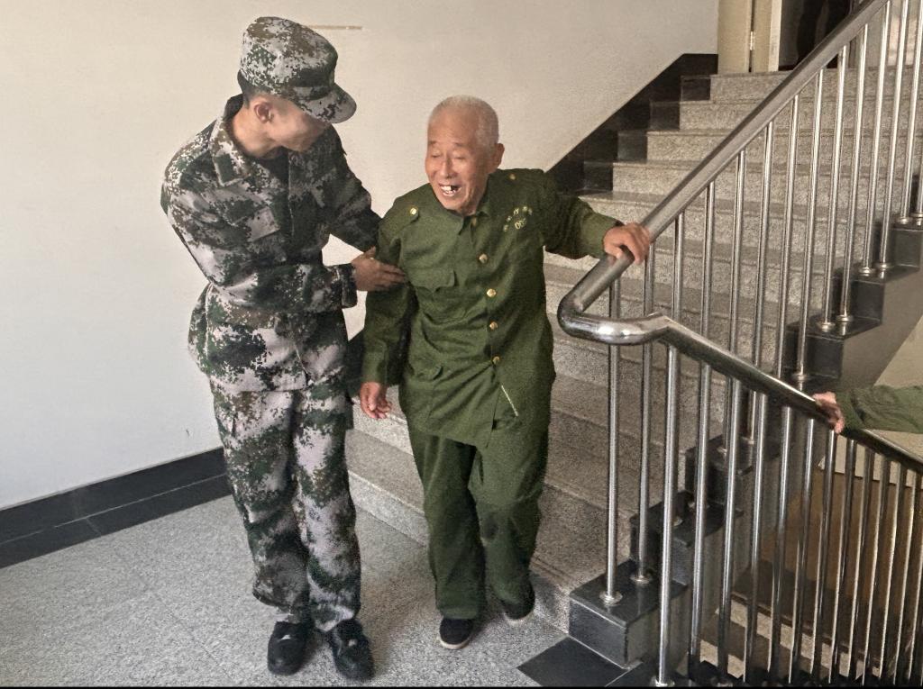 表演结束后,艺术学院学子们积极热情地与退役老兵合影留念,并主动搀扶老兵回到病房,走进退役老兵的日常生活中,与他们交流互动,关心他们的身体状况,倾听他们讲述刻骨铭心的抗战事迹,感受老一辈军旅战士的真情告白。