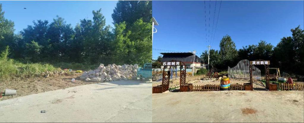 在项目进行之际,艺术学子们面临着材料到位,场地改造,材料来源及当地情况把控等不确定性。通过指导老师提供材料帮助、解决搬运沙土、石块等问题,最终攻克困难,圆满完成项目的推进与落地工作。