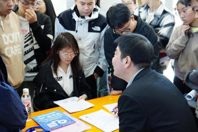 米乐官网党委副书记、副校长邵晓康,招生就业处处长张建新、各学院负责人及辅导员老师来到双选会现场。邵晓康深入展位与用人单位代表进行面对面交流,详细询问行业特点、招聘需求等情况,希望与企业在实习、就业、产教融合等方面加深合作交流。