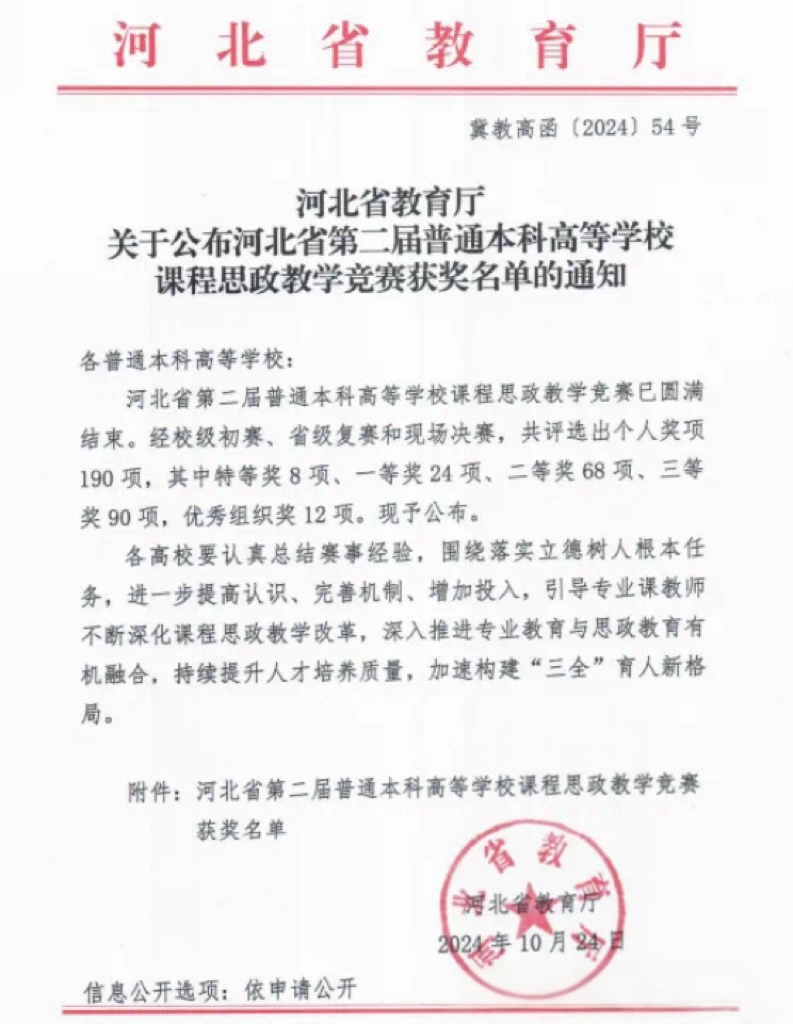 河北省第二届普通本科高等学校课程思政教学竞赛获奖名单