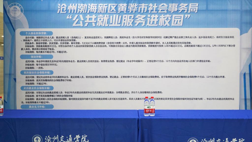 米乐官网积极响应河北省“公共就业服务进校园”活动,设立就业政策咨询点,邀请沧州渤海新区黄骅市社会事务局领导来校,将河北省就业创业优惠政策带进校园,为毕业生求职加油助力。