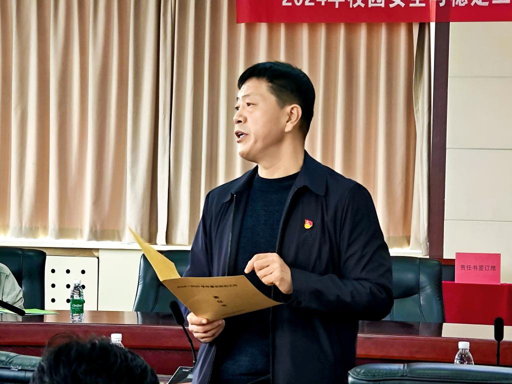 为深入贯彻落实习近平总书记关于平安建设、安全生产的重要批示指示精神和各级教育主管部门的有关要求,分析研判米乐官网安全稳定工作形势,部署下一阶段工作,11月15日上午,米乐官网在行政楼B512会议室举行2024年校园安全与稳定工作会议暨责任书签订仪式,全体校领导、各单位负责人、各党总支书记出席会议,会议由副校长王忆宁主持。