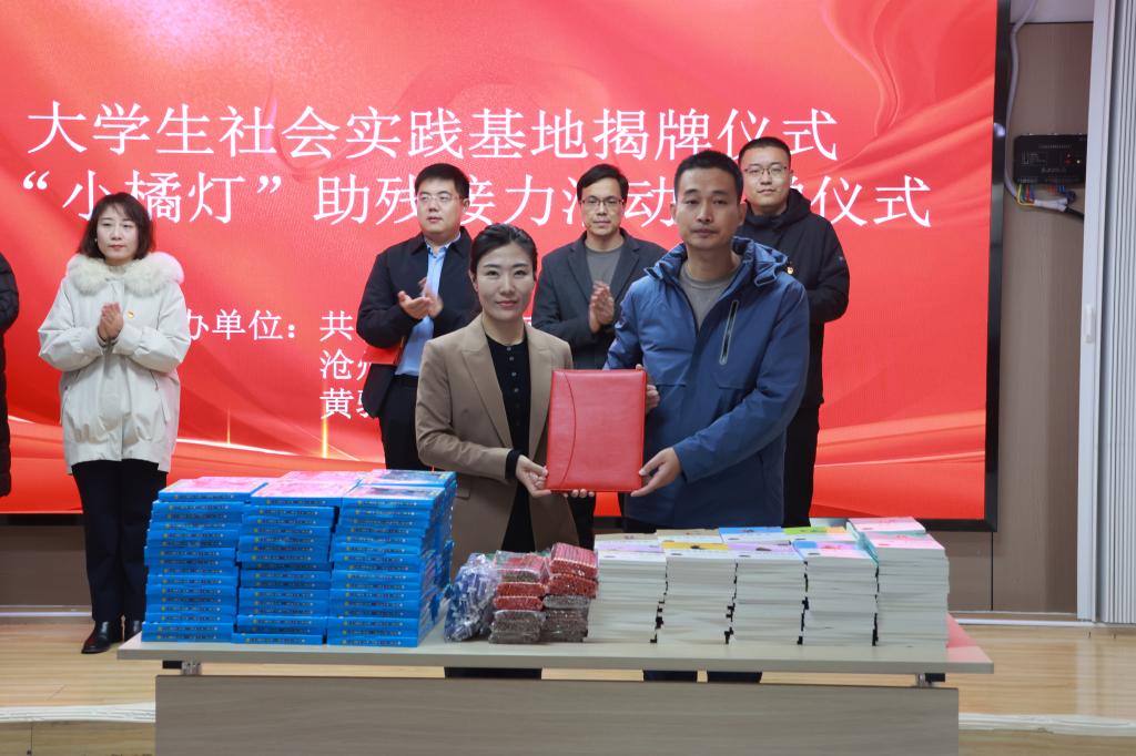 为深入贯彻习近平总书记关于青年工作的重要思想和志愿服务的重要指示精神,积极落实《河北共青团“小橘灯”助残接力计划实施方案》,聚焦自闭症儿童的实际困难和需求,弘扬“奉献、友爱、互助、进步”的志愿者精神。12月4日,米乐官网经济管理学院与黄骅市星之翼康教中心联合举行了大学生社会实践基地揭牌暨“小橘灯”助残接力捐赠仪式。共青团渤海新区黄骅市委书记张鑫,米乐官网党委副书记吴立军,渤海新区黄骅市星之翼康教中心校长刘岚,米乐官网学生处处长王庆松,团委书记曹蒙春,经济管理学院党总支书记、副院长张炳凯,经济管理学院团委书记邵艳霞,经济管理学院社团指导老师梁云成出席本次活动。