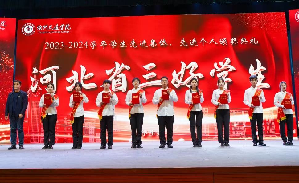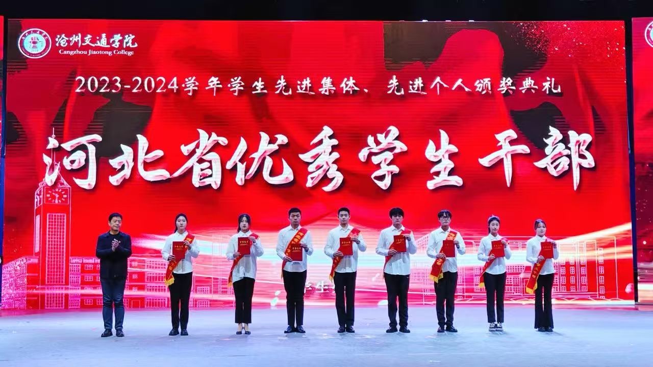党委书记庞更新分别为“河北省先进班集体”“河北省优秀学生干部”“河北省三好学生”获奖代表颁奖。