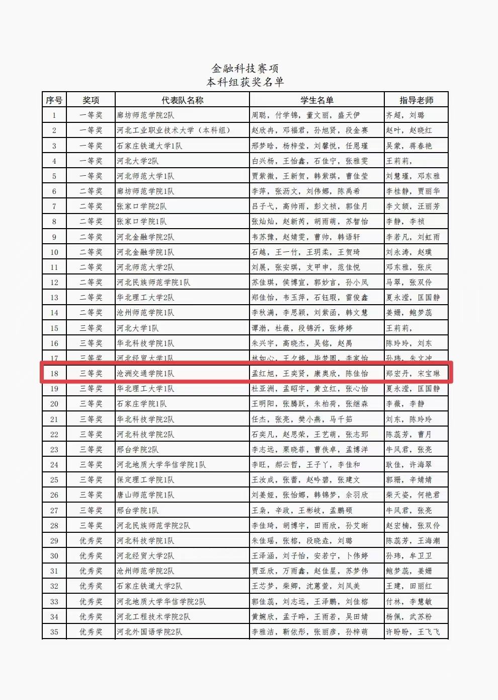 在金融科技赛项获得了本科组三等奖一项、优秀奖一项;教师组三等奖一项、优秀奖一项。