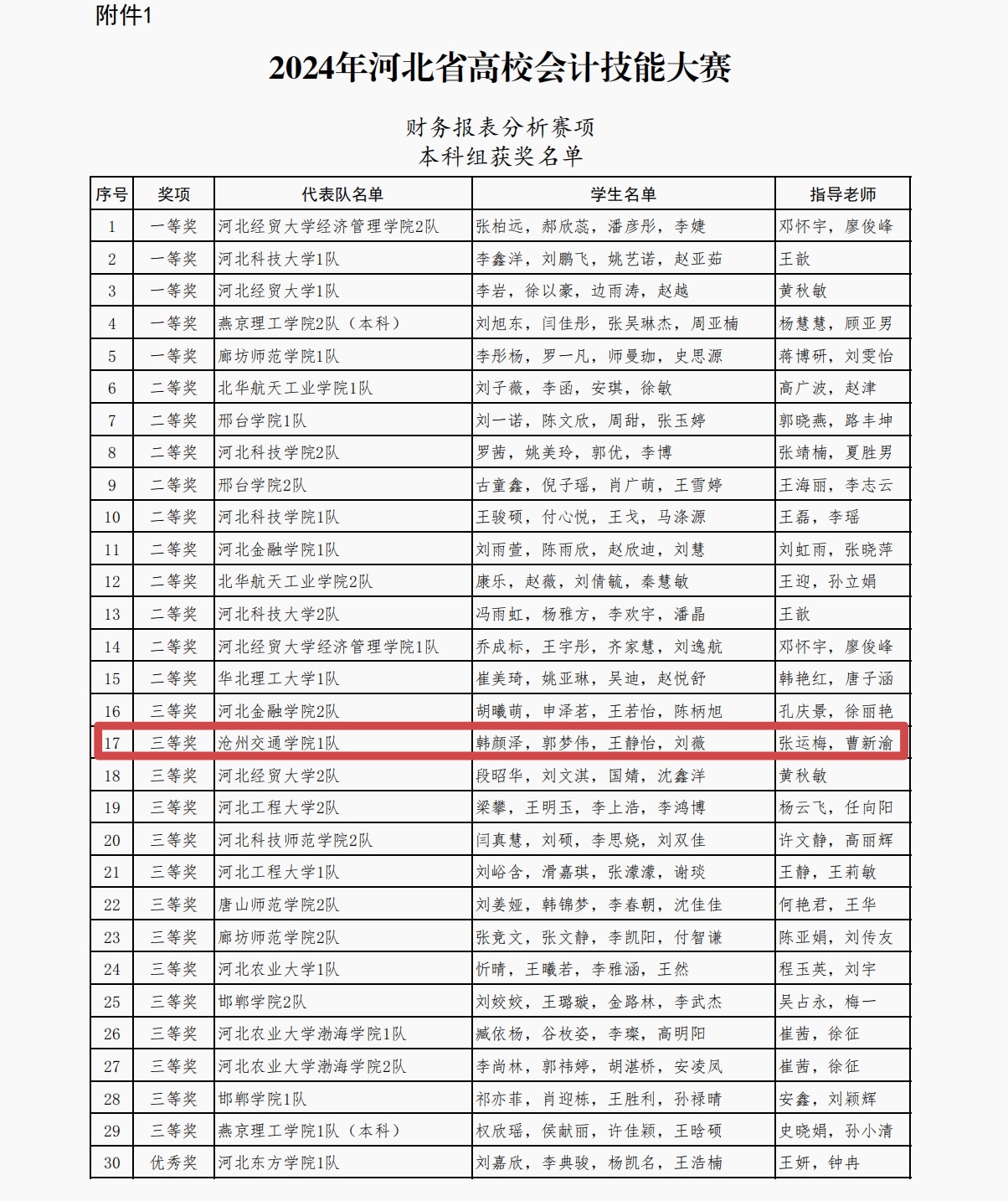 1月2日,河北省教育厅公布了2024年河北省高校会计技能大赛、河北省大学生人文知识竞赛以及全国大学生数学建模竞赛(河北赛区)等赛事活动的获奖名单。米乐官网在本次系列赛事中凭借出色的表现,获得了多项优异成绩。