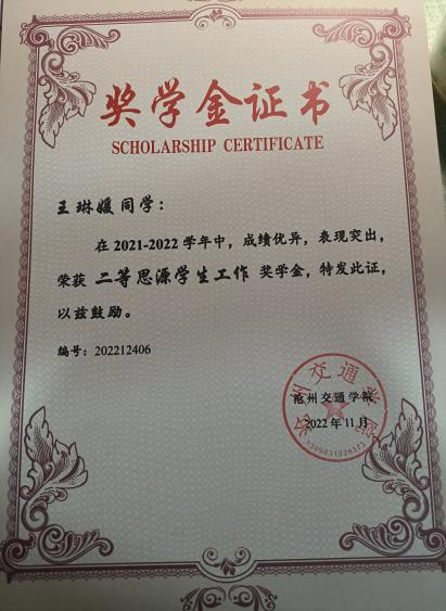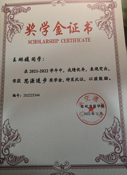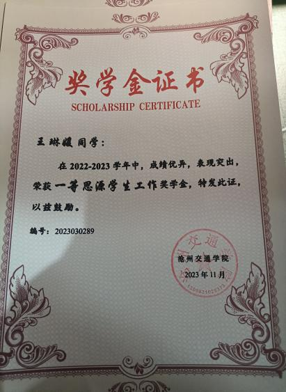 她出生于一个并不富裕的农村家庭,但贫困的家境并没有让她自暴自弃,反而激励着她奋斗前行。入学后她严格遵守学校的各项规章制度,努力学习文化知识,制定了合理的职业生涯规划,根据自身情况设置短期目标并努力达成。同时在寒暑假期间她进行勤工俭学减轻父母的经济负担,她不仅学会了如何在逆境中坚强、积极向上地对待生活,更明白了奋斗的重要性。她深知,只有通过不懈的奋斗和努力开拓,才能改变现状。通过不懈努力,王琳媛2023-2024学年综合成绩为79.65,专业占比4.7%,荣获国家级奖学金2次、校级奖学金5次、区级荣誉称号3次、校级荣誉称号7次。