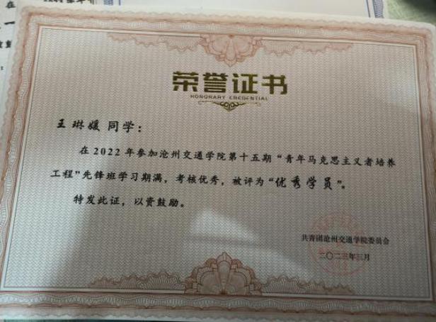 王琳媛在行动中践行着她的信仰与担当。在思想上,她积极向党组织靠拢,在大一入学便递交了入党申请书,表明了自己梦想成为一名合格共产党员的决心,积极参加各类党团活动,青年马克思主义培养工程,并取得优秀学员称号。目前她已是一名中共预备党员,并时刻严格要求自己,在学习和工作中锐意进取,以身作则,努力成为一名优秀的中共党员。