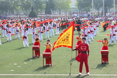 激昂鼓声,如奋进号角,点燃心中澎湃的热情,雷霆鼓韵,让猎猎旌旗指引健康人生的航向,闪转腾挪,一招一式尽显中华武术神韵。